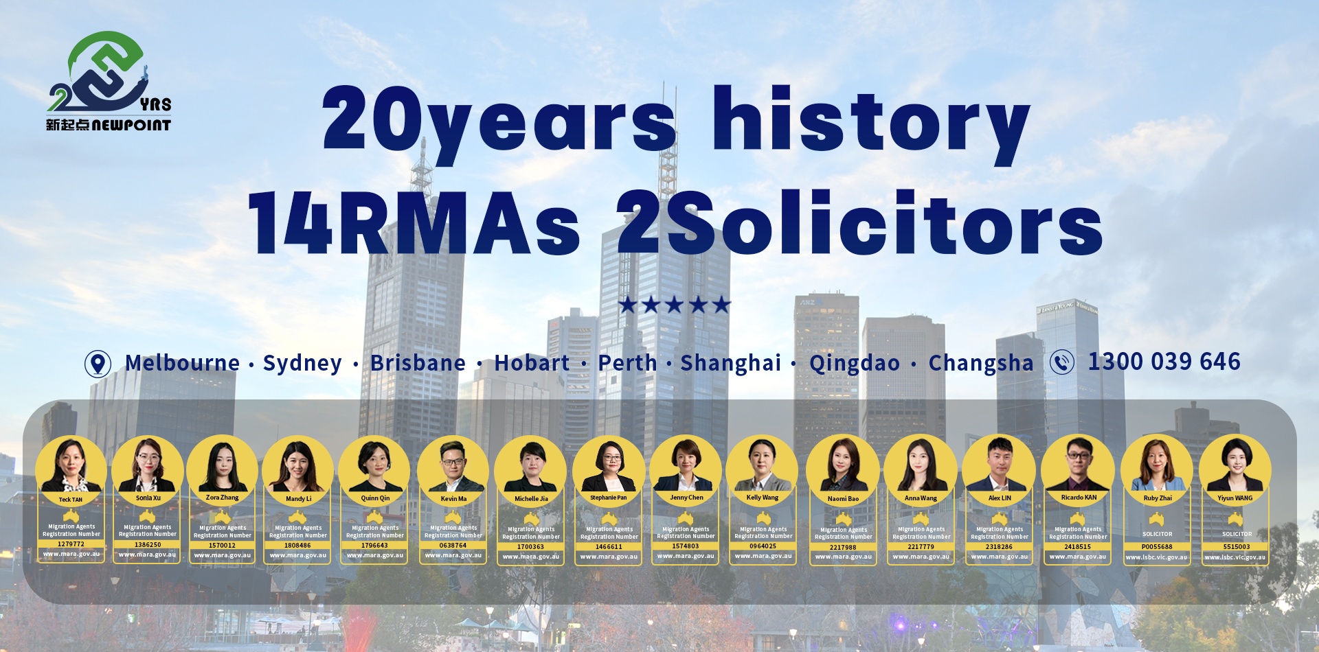 Newpoint Education and Migration was established in 2005 and has 20 years of rich industry experience. It has a strong professional service team, including 14 registered migration agents, more than 10 migration and study consultants, 2 Australian registered lawyers, 2Australian CPA certified accountants,